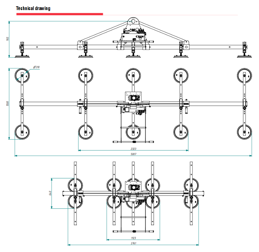 Δεδομένου ότι το μήκος του ρυθμίζεται από 2761mm έως 5007mm, είναι το τέλειο ανυψωτικό κενού για το χειρισμό λαμαρίνας μεταβλητών διαστάσεων όπως 6000x2000mm, 4000x2000mm και 3000x1500mm.