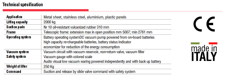 Το FT10B2000 είναι ανυψωτικό κενού από λαμαρίνα με τηλεσκοπικό πλαίσιο.