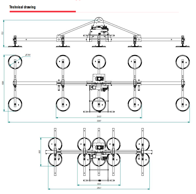 Καθώς το μήκος του ρυθμίζεται από 2841 mm έως 5087 mm, είναι το τέλειο ανυψωτικό κενού για χειρισμό λαμαρίνας μεταβλητών διαστάσεων όπως 6000x2000mm, 4000x2000mm και 3000x1500mm.