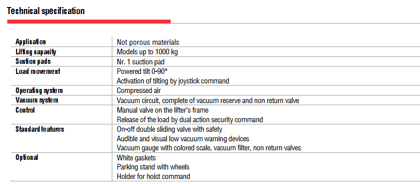 Η σειρά ανυψωτικών κενού P1A είναι μια σειρά μοντέλων μονών επιθεμάτων με ανυψωτική ικανότητα από 125 kg έως 1000 kg.