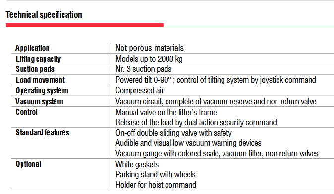 Η μέγιστη χωρητικότητα του ανυψωτικού εξαρτάται από τη διάσταση των πλακών αναρρόφησης.