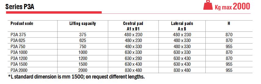 Η σειρά ανυψωτικών κενού P3A είναι μια σειρά μοντέλων 3 μαξιλαριών με ανυψωτική ικανότητα από 375 kg έως 2000 kg.