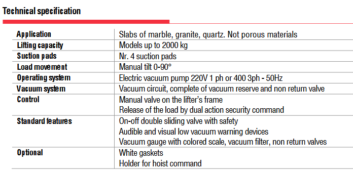 ΗΛΕΚΤΡΙΚΗ ΒΕΝΤΟΥΖΑ ΑΝΥΨΩΣΗΣ ΓΙΑ ΤΟΠΟΘΕΤΗΣΗ ΠΛΑΚΩΝ ΣΚΥΡΟΔΕΜΑΤΟΣ & ΠΕΤΡΑΣ RIGHETTI M4EB ΈΩΣ 2000KG 220V-380V