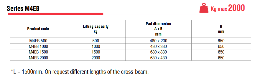Το M4EB είναι μια σειρά ανυψωτικών κενού που περιέχει μια μεγάλη γκάμα μοντέλων 4 πλακών με χωρητικότητες που κυμαίνονται από 500 kg έως 2000 kg.