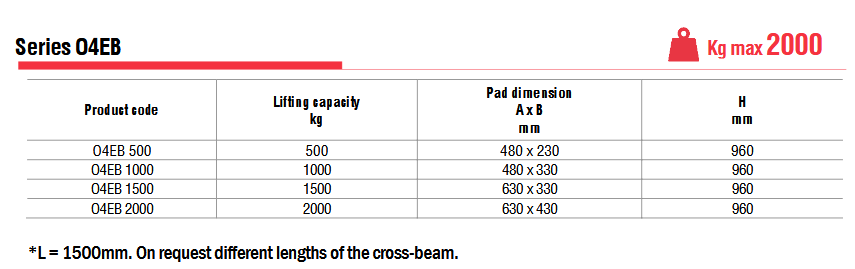 Το O4EB είναι μια σειρά ανυψωτικών κενού που περιέχει μια μεγάλη γκάμα μοντέλων 4 πλακών με χωρητικότητες που κυμαίνονται από 500 kg έως 2000 kg.