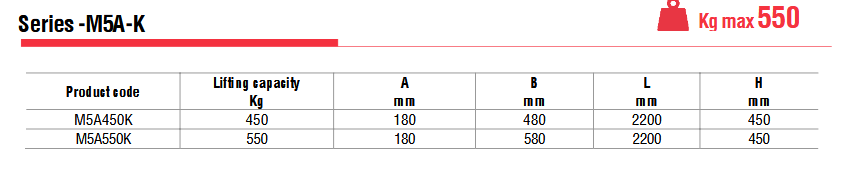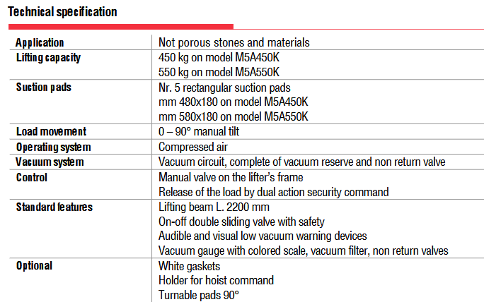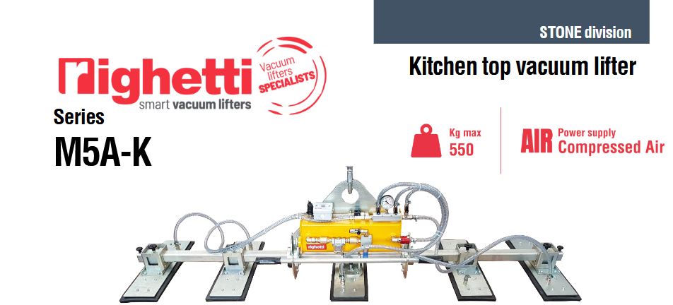 Η σειρά M5A-K είναι μια σειρά ανυψωτικών κενού ειδικά για επιφάνειες κουζίνας με ανυψωτική ικανότητα έως 550 κιλά.