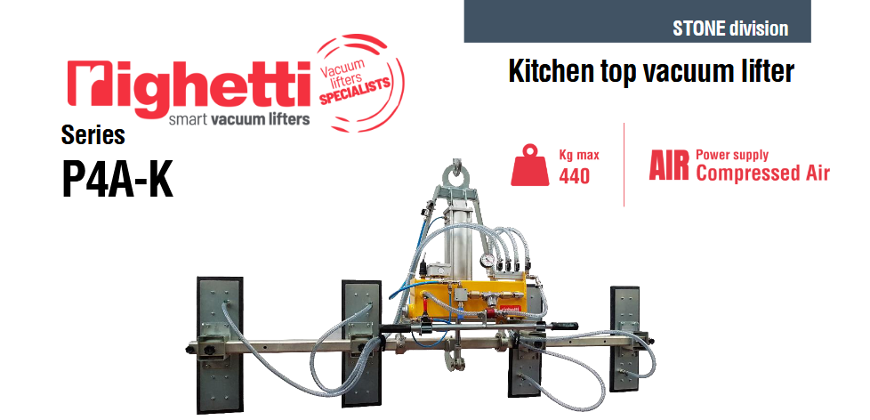 Το P4A-K είναι μια σειρά ανυψωτικών κενού που είναι ειδικά για επιφάνειες κουζίνας και έχουν μέγιστη ανυψωτική ικανότητα 440 kg.