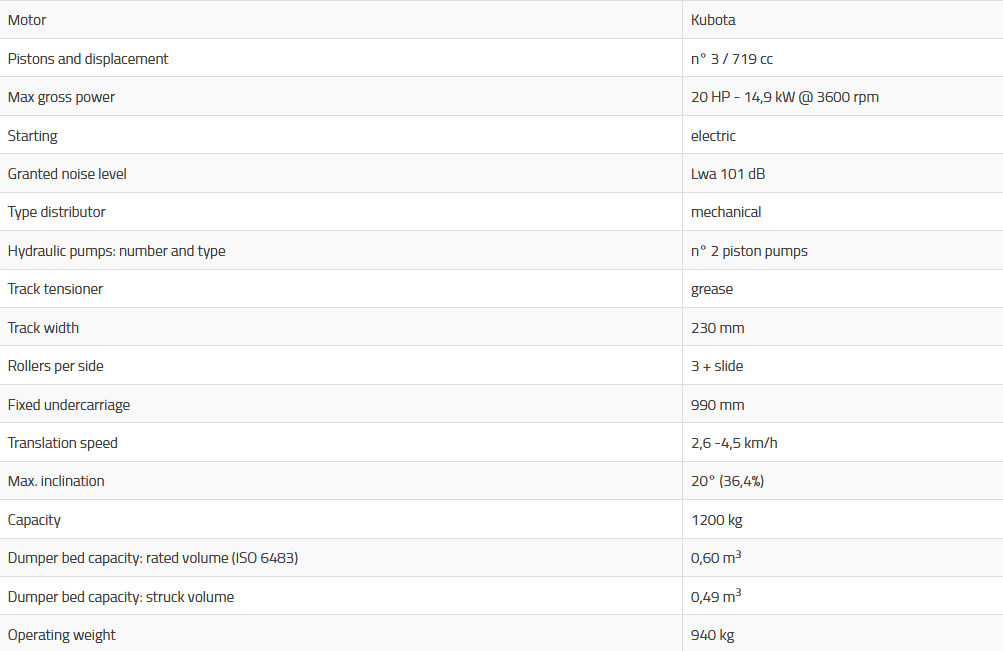 The strengths of this minidumper are multifunctionality, resistance and compactness, the result of the investments that the company constantly makes in technological innovation, to obtain increasingly advanced and effective machines that respect the environment and the safety of the operator.