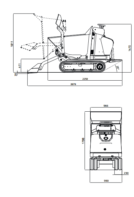 The medium-sized minidumper with high dump system and 1 tonne capacityThe HS1203 model is the evolution of the medium-sized minidumper, a