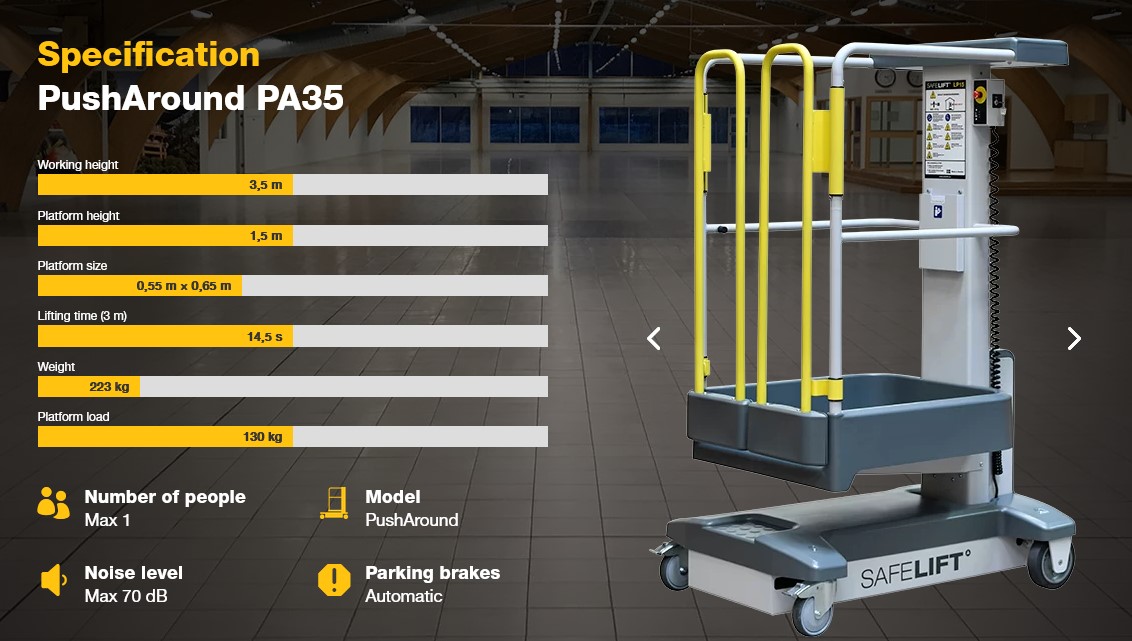 - SAFELIFT ORDER PICKER ΜΗΧΑΝΗΜΑ ΣΥΛΛΟΓΗΣ ΠΑΡΑΓΓΕΛΙΩΝ PA35 3,5M ΥΨΟΣ ΕΡΓΑΣΙΑΣ 130KG