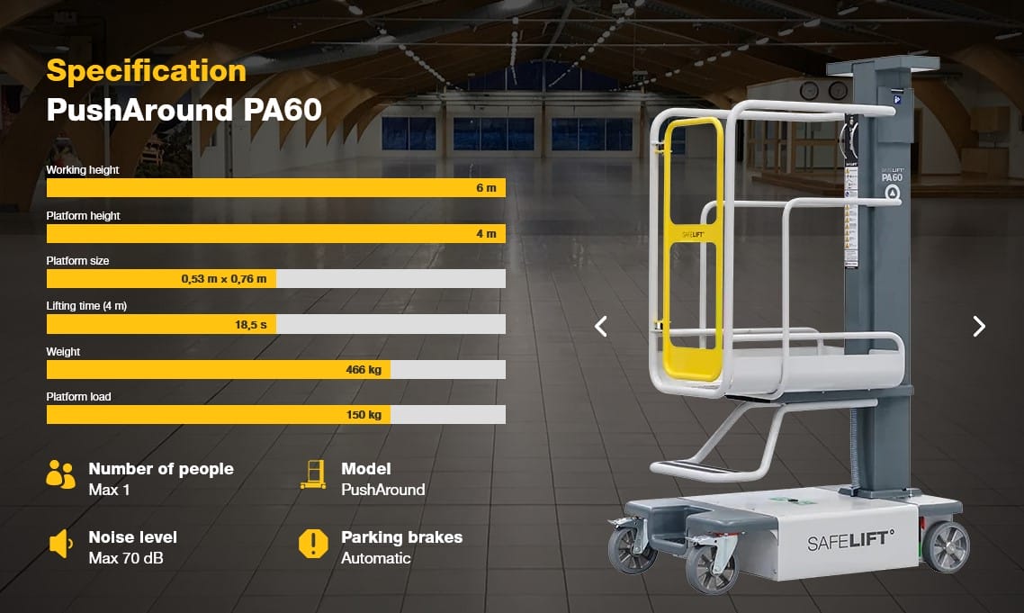 SAFELIFT ORDER PICKER ΜΗΧΑΝΗΜΑ ΣΥΛΛΟΓΗΣ ΠΑΡΑΓΓΕΛΙΩΝ PA60 6M ΥΨΟΣ ΕΡΓΑΣΙΑΣ 150KG