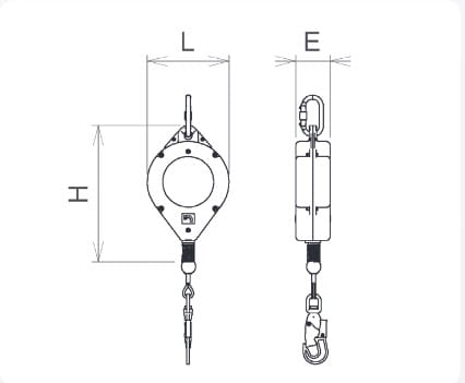 - Περιστρεφόμενος γάντζος σύνδεσης με αυτόματο κλείδωμα άκρο καλωδίου, άνοιγμα 20 mm με ένδειξη πτώσης.