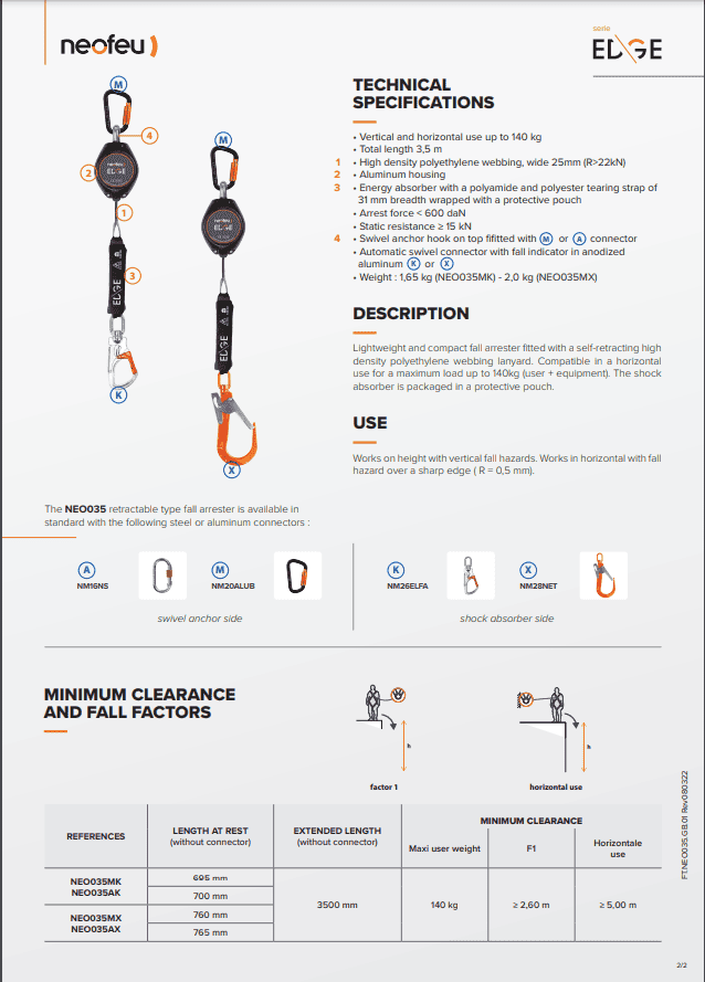 NEOFEU ΑΝΑΚΟΠΤΗΣ ΠΤΩΣΕΩΣ NEO035MK 140KG 3,5M