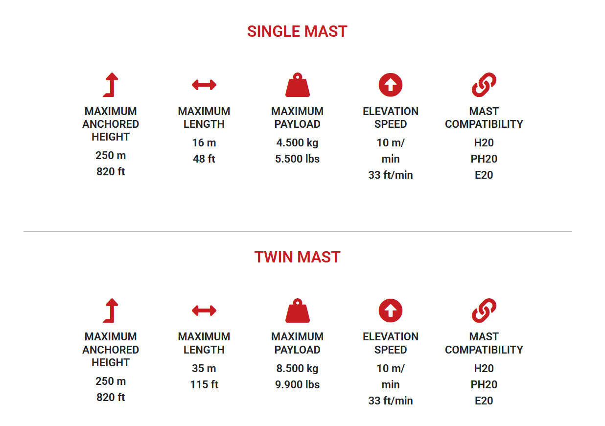 - Ιδανικό για όλους τους τύπους βαρέων εργασιών σε μεγάλα ύψη και όταν απαιτούνται πολύ εντατικές εργασίες.