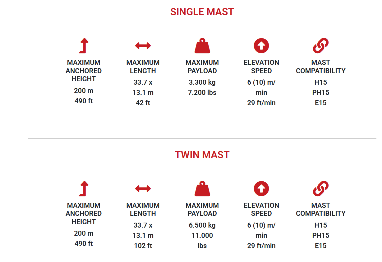 Πλατφόρμα μεταφοράς E15Το ανυψωτικό κατασκευών SAEclimber E15 που συμμορφώνεται σύμφωνα με το πρότυπο EN 12159. Διατίθεται σε 2 διαφορ..