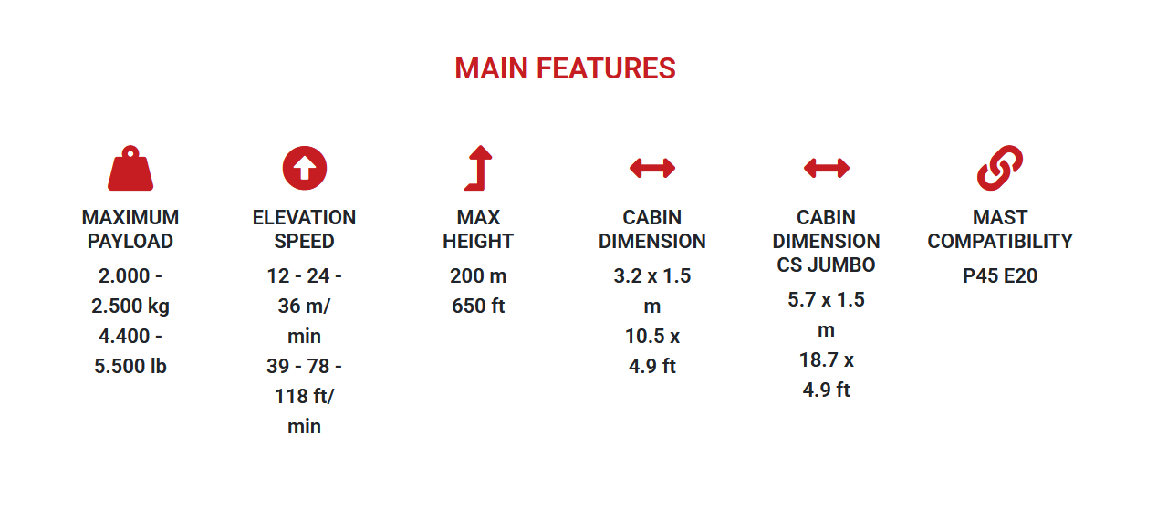 Το PH20 είναι μια πλατφόρμα μεταφοράς ατόμων και υλικών που συμμορφώνεται σύμφωνα με το πρότυπο EN 12158 και EN 16719. Διατίθεται με ταχύτητα 12 m/min (μέγιστη επιτρεπόμενη ταχύτητα σύμφωνα με τους κανονισμούς) ή έκδοση πολλαπλών ταχυτήτων 12/24/36 m/min με μετατροπέα (VFC) για πλατφόρμα μεταφοράς/ανυψωτικό υλικών μικτής χρήσης. Διατίθεται επίσης ως ανυψωτικά υλικών (μοντέλο H20) με αυτόματο έλεγχο στα πλατύσκαλα. Διατίθεται σε μεγαλύτερη χωρητικότητα φορτίου έως 2,5 τόνους, έκδοση jumbo με καμπίνα μήκους 6 m, έκδοση Combi και έκδοση με διπλό κλουβί. Το PH20 είναι κατασκευασμένο για χρήση σε πολύ έντονες συνθήκες εργασίας, με μεγάλα ύψη. Η πλατφόρμα μεταφοράς PH20 είναι εξοπλισμένη με αρθρωτό σύστημα, εναλλάξιμες πόρτες και δυνατότητα τρίτης πλευρικής μεγάλης πόρτας, για μέγιστη ευελιξία χρήσης στο εργοτάξιο. Η διατομή ιστού είναι η ίδια με τα E20 και P45.Πλατφόρμα Μεταφοράς PH20 Ανυψωτικό Υλικών H20