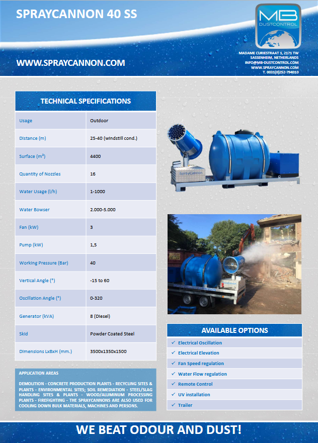 MB Dustcontrol SprayCannon 40 SS σύστημα καταστολής σκόνης φορητό SprayCannon 40 SS από MB Dustcontrol SprayCannon 40 SS με εμβέλεια 40 m και κάλυψη 4.400 m²