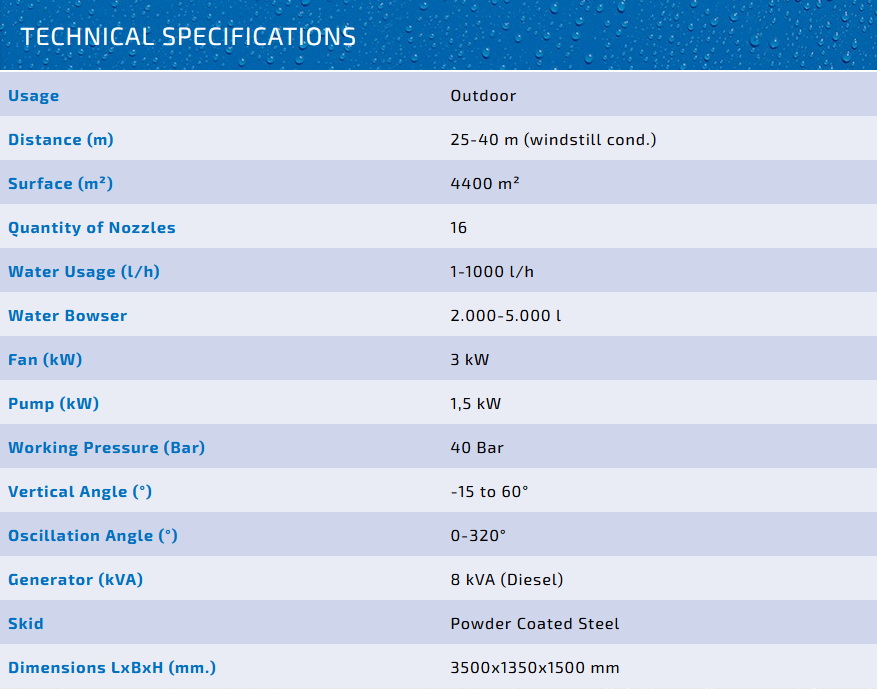 Αυτοστηριζόμενο κανόνι ψεκασμού για τον έλεγχο της σκόνης τόσο σε εσωτερικούς όσο και σε εξωτερικούς χώρους.