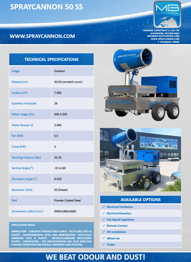 MB Dustcontrol SprayCannon 50 SS | Σύστημα καταστολής σκόνης με εως 50 μέτρα εμβέλεια και κάλυψη έως 7.000 m²