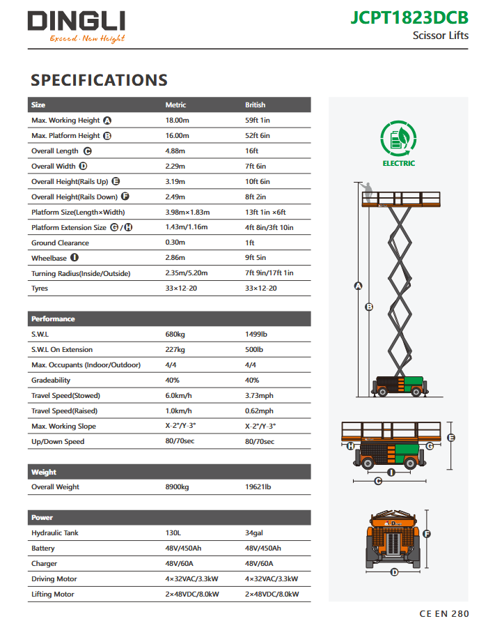 Dingli JCPT1823DCB | Ηλεκτρική ψαλιδωτή πλατφόρμα εργασίας με ύψος εργασίας 18 μέτρα και ανυψωτική ικανότητα 680 κιλά