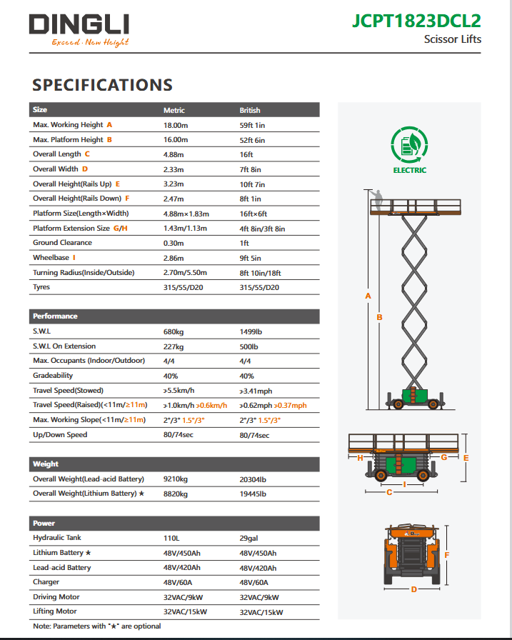 Dingli JCPT1823DCL2 | Ηλεκτρική ψαλιδωτή πλατφόρμα εργασίας με ύψος εργασίας 18 μέτρα και ανυψωτική ικανότητα 680 κιλά