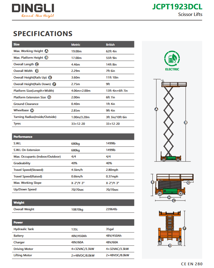 Το JCPT1923RTL είναι ψαλιδωτό ανυψωτικό πετρελαίου, εξοπλισμένο με ισχυρό κινητήρα 36.4kW, προσφέροντας υψηλή απόδοση και ικανότητα κίνησης σε πλήρες ..