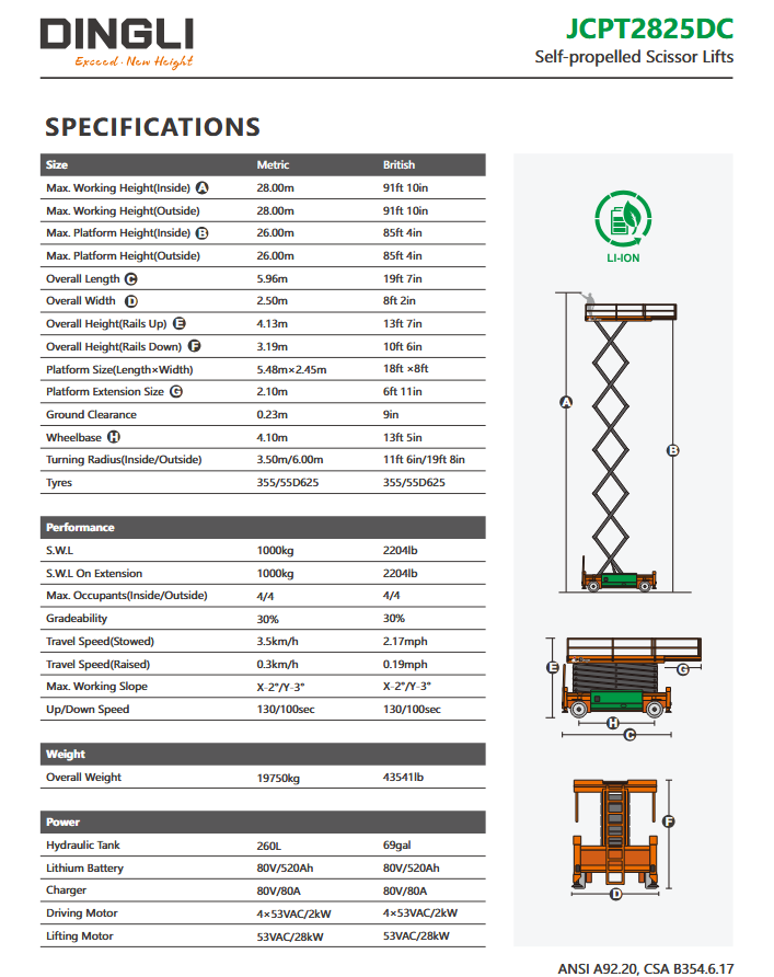 Dingli JCPT2825DC | Ηλεκτρική ψαλιδωτή πλατφόρμα εργασίας με ύψος εργασίας 28 μέτρα και ανυψωτική ικανότητα 1000 κιλά