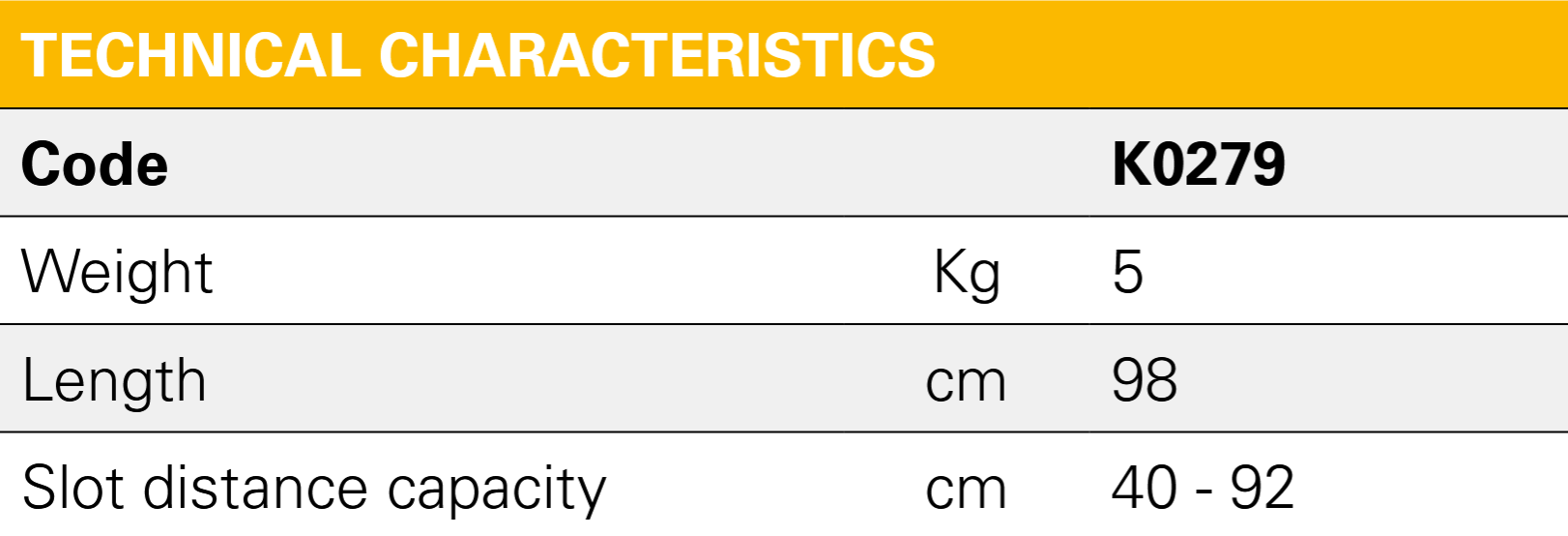 Construction in galvanized steel with laser cut slots. Allows to grab axel spacing distance of slots mm 400-920, total length mm 980.