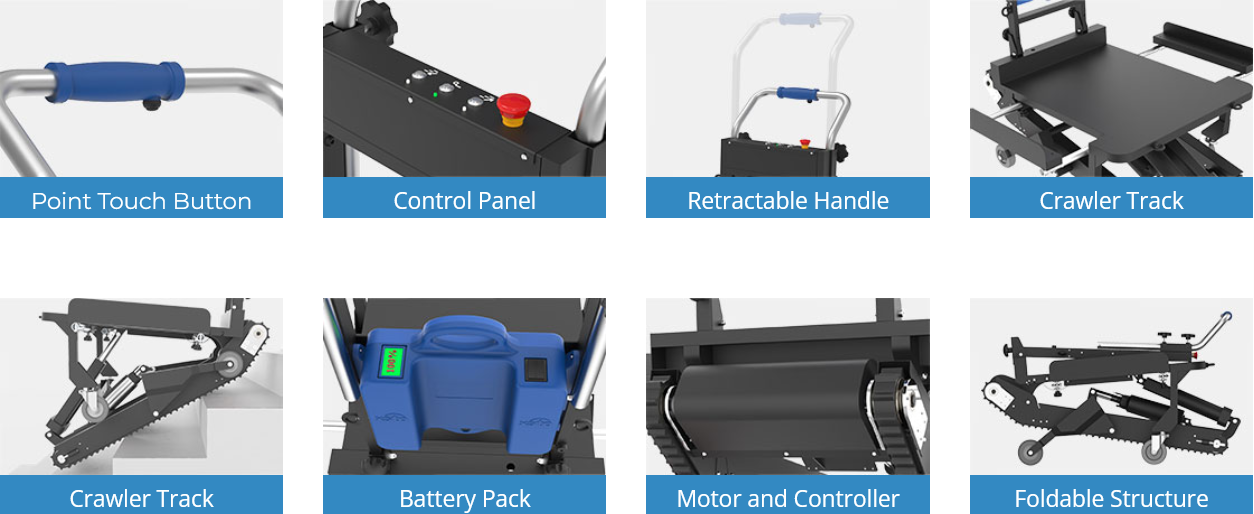 Το XSTO stair climber CT420S είναι ένα αυτόματο καρότσι αναρρίχησης σκαλοπατιών το οποίο φορτώνει έως και 420KG φορτίο στις σκάλες και είναι η premium..