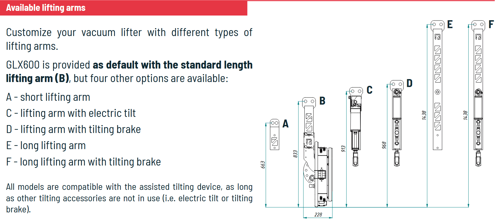 Ηλεκτρικός βραχίονας ανύψωσης για κλίση 0–90°