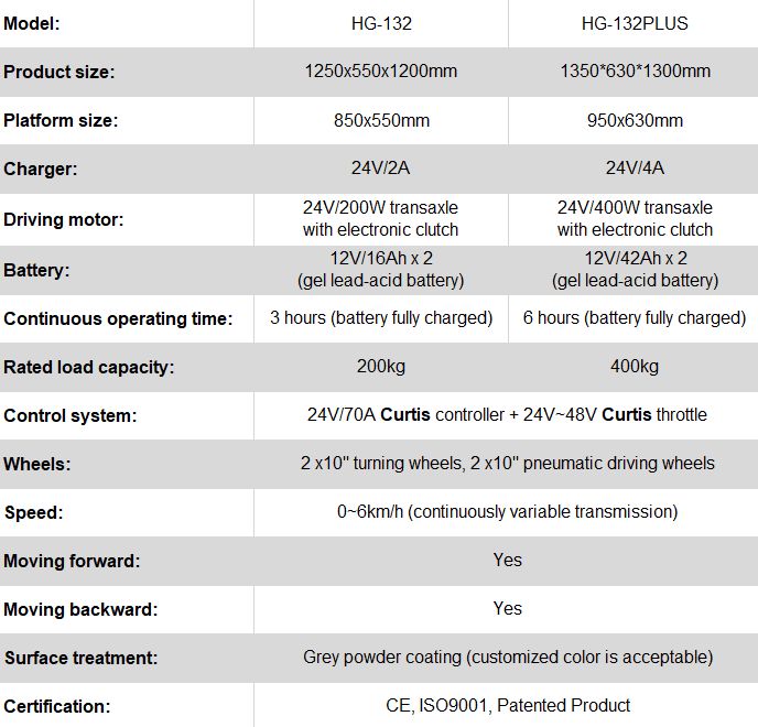 HUAGANG HG-132 /PLUS | Ηλεκτροκίνητο Καρότσι Όρθιας Οδήγησης για μεταφορές φορτίων έως 400 kg