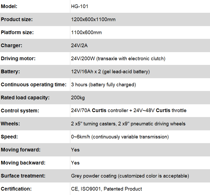 - HUAGANG HG-101 | Ηλεκτροκίνητο Καρότσι Πλατφόρμας | 200 kg