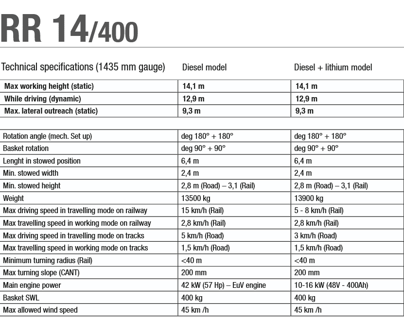 - Platform Basket RR14/400 | Αυτοκινούμενο αρθρωτό καλαθοφόρο συντήρησης σιδηροδρόμων | 14,4 m 400 kg