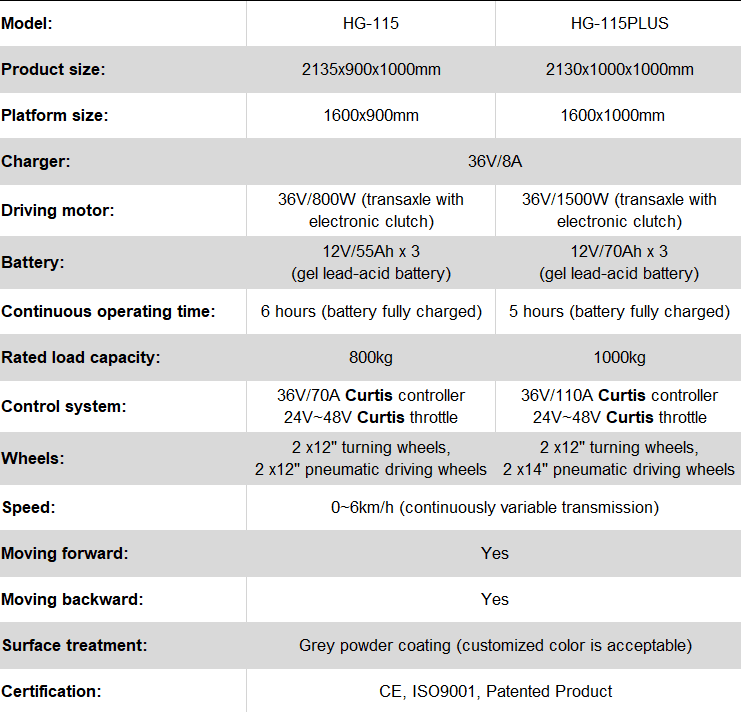 - HUAGANG HG-115 / PLUS | Ηλεκτροκίνητο Καρότσι Πλατφόρμας | 1000 kg