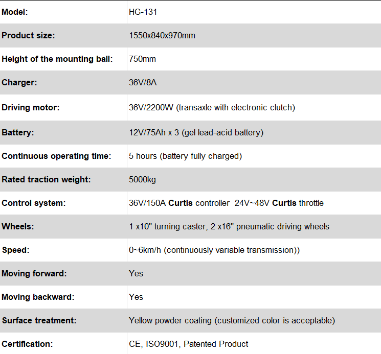 HUAGANG HG-131| Ηλεκτροκίνητο Ρυμουλκό για μεταφορά φορτίων έως 5 τόνους
