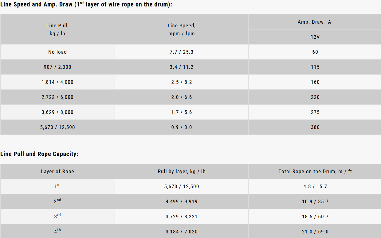 Ονομαστική Ικανότητα Έλξης: 5.670 kg / 12.500 lb (μονή γραμμή)