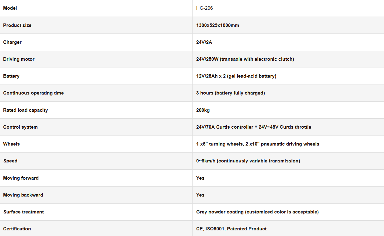 - HUAGANG HG-206 | Ηλεκτρικό Καρότσι Μεταφοράς Υλικών | 200 kg