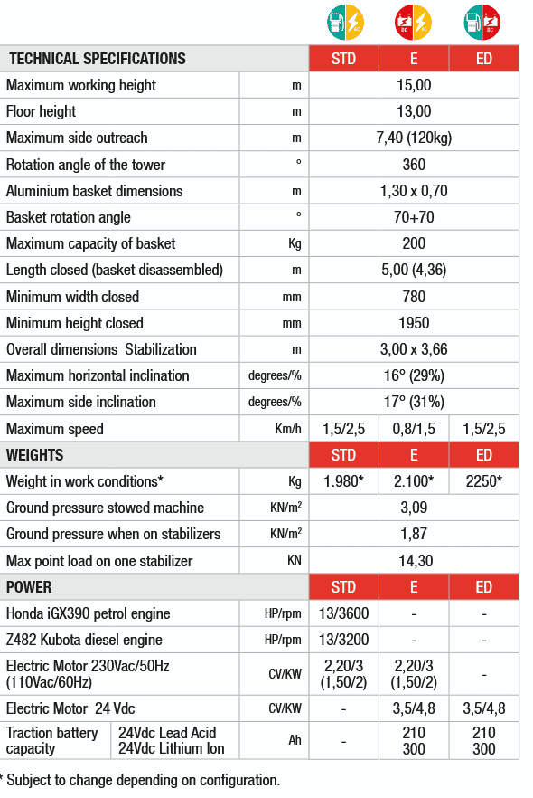 Ο συνδυασμός της συμπαγούς κατασκευής, της ευκολίας μεταφοράς και της δυνατότητας εργασίας σε περιορισμένους χώρους την κάνει άριστη επιλογή για εργασίες όπως κλάδεμα δέντρων, συντήρηση, βαφή και οποιαδήποτε εργασία σε ύψος που δεν μπορεί να εξυπηρετηθεί από μια συμβατική πλατφόρμα.