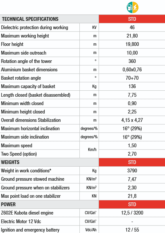 - Platform Basket Spider 22.10.46 kV | Υβδριδικό Ερπυστριοφόρο αυτοκινούμενο καλαθοφόρο αράχνη με μόνωση 46 kV | 21.80 m