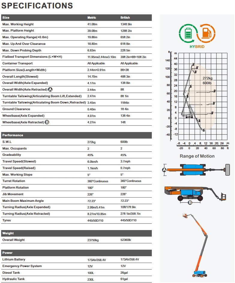 - Dingli BA41HRT | Υβριδικό αυτοκινούμενο αρθρωτό ανυψωτικό καλαθοφόρο | 41 m