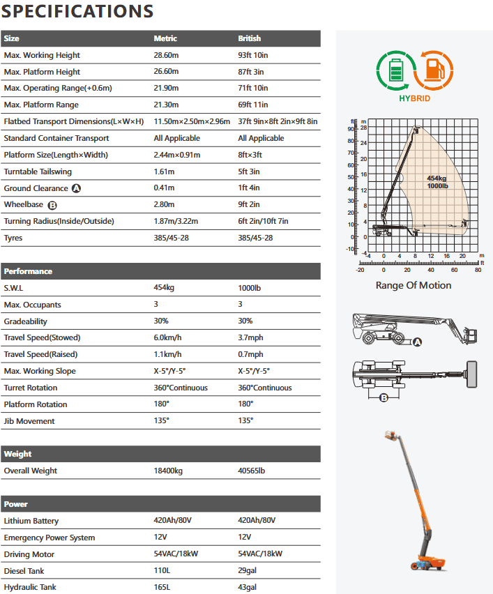 - Dingli BT28HRT | Υβριδικό αυτοκινούμενο αρθρωτό ανυψωτικό | 28,6 m