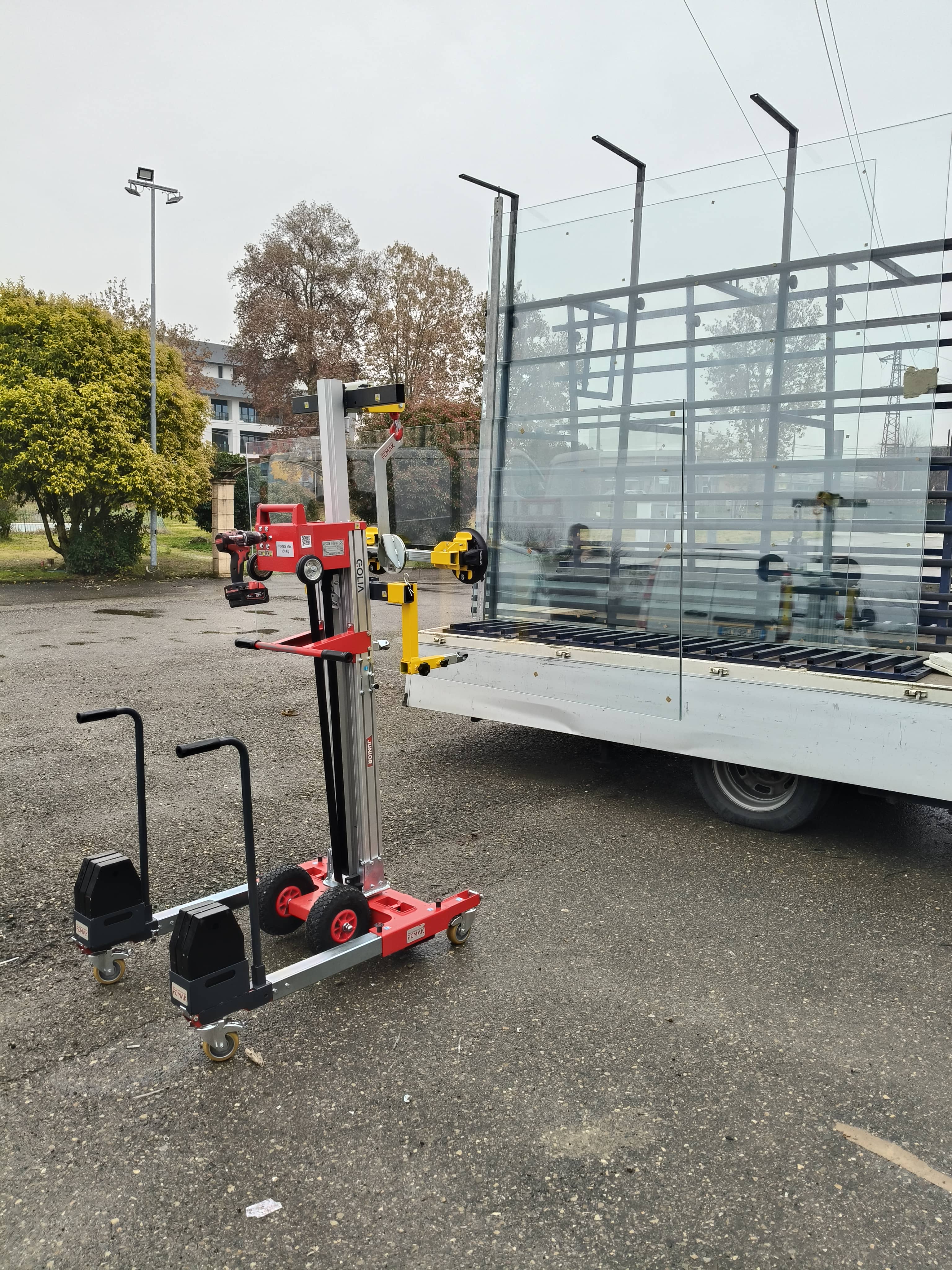 The Golia Junior is a compact and versatile material lifter specifically designed for lifting and handling delicate surfaces such as glass panes, frames, and other large glazing elements in air‑conditioning and heating installations, plumbing, electrical systems and construction projects. This model delivers professional performance with a focus on safety, reliability and ease of daily use.