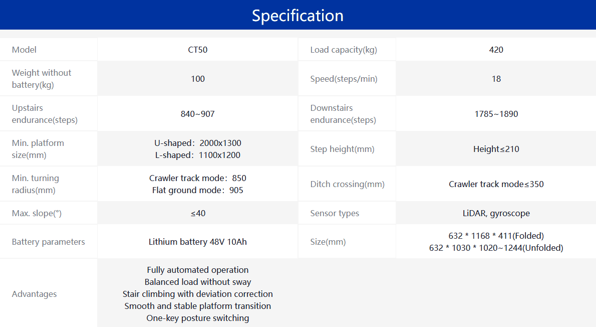- XSTO CT50 AI | Ερπυστριοφόρο ηλεκτρικό καρότσι μπαταρίας για σκάλες | έως 420 kg