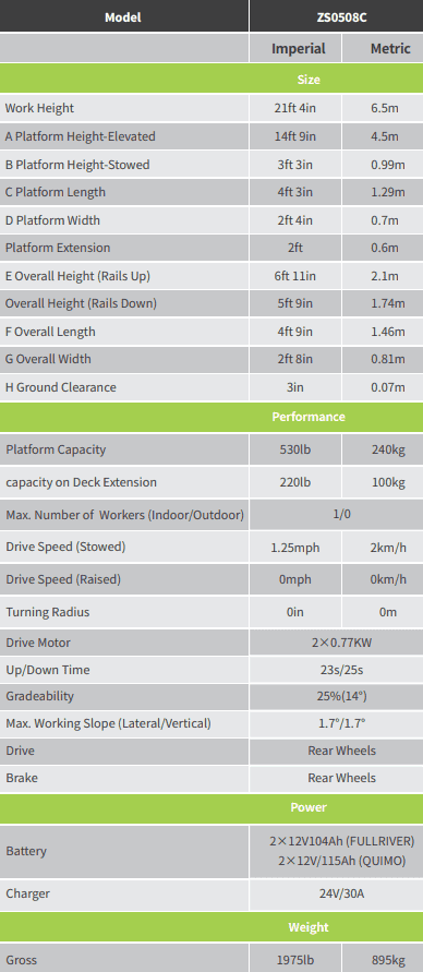 Max. Working Height: 6.5 m