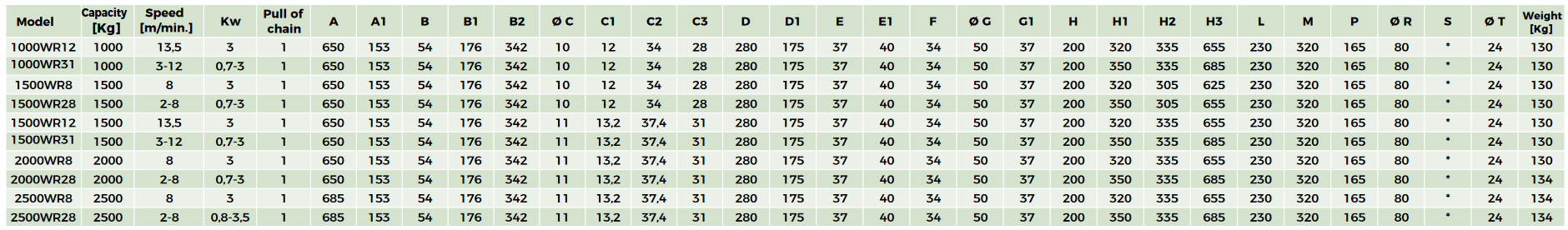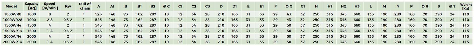 chain winches are designed and manufactured to lift loads from 125 to 5000 kg