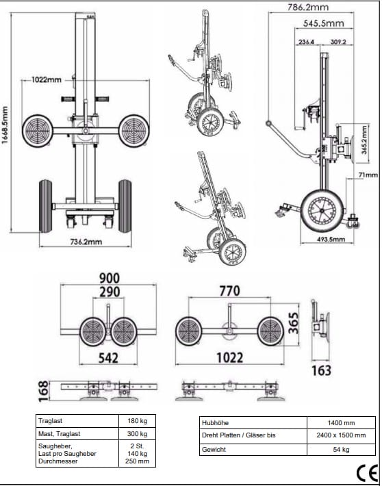 - KSF GT 2 | Glass Trolley for Panels & Windows 1.4 m - 180 kg