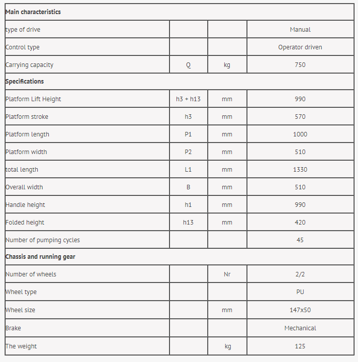 For easy transport & lifting of loads the TF50 is the solution.The platform can also be used as a work desk.Easy movement with wheels that have brakes..