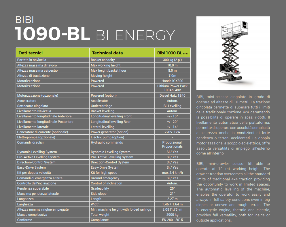 - ALMACRAWLER MINI CRAWLER SCISSOR LIFT BIBI 1090BL BI-ENERGY - 10M 300KG