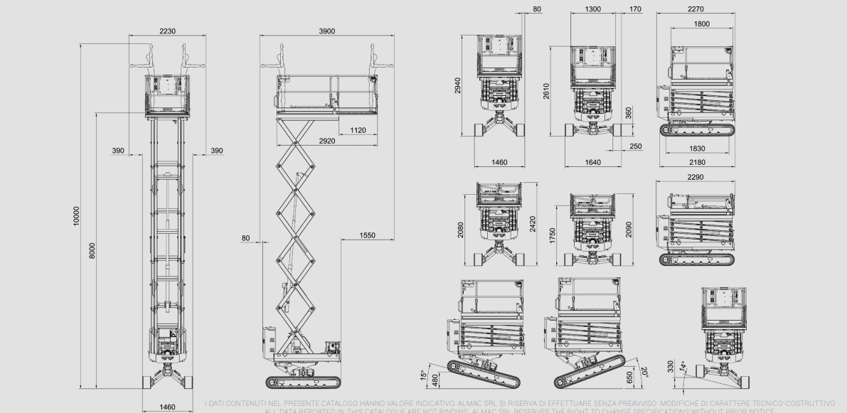 In addition to the standard technological devices installed in the machine in question, such as the console for remote control and all those concerning automatic leveling, Almac offers the possibility of choosing some optional to expand your tracked lift functions. If you are interested in expanding your machine fleet with the mini-scissor here proposed, in fact, you will have the possibility to request optional features such as a Hatz 1B40 diesel engine instead of the petrol one, or anti-marking tracks.