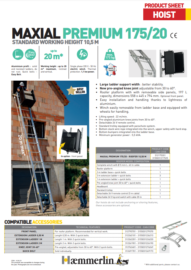The most powerful hoist on the market! Reinforced ladders, 250 kg payload and up to 40 m of working height.Stable thanks to a wide structure and the r..